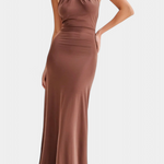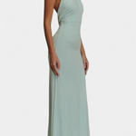 Refined seduction with a silhouette that hugs every curve with intention. The Trinity dress combines an elegant halter neckline with strategic ruching that sculpts the figure. Its low open back and fitted maxi cut create a powerful and sophisticated look for occasions that demand presence.